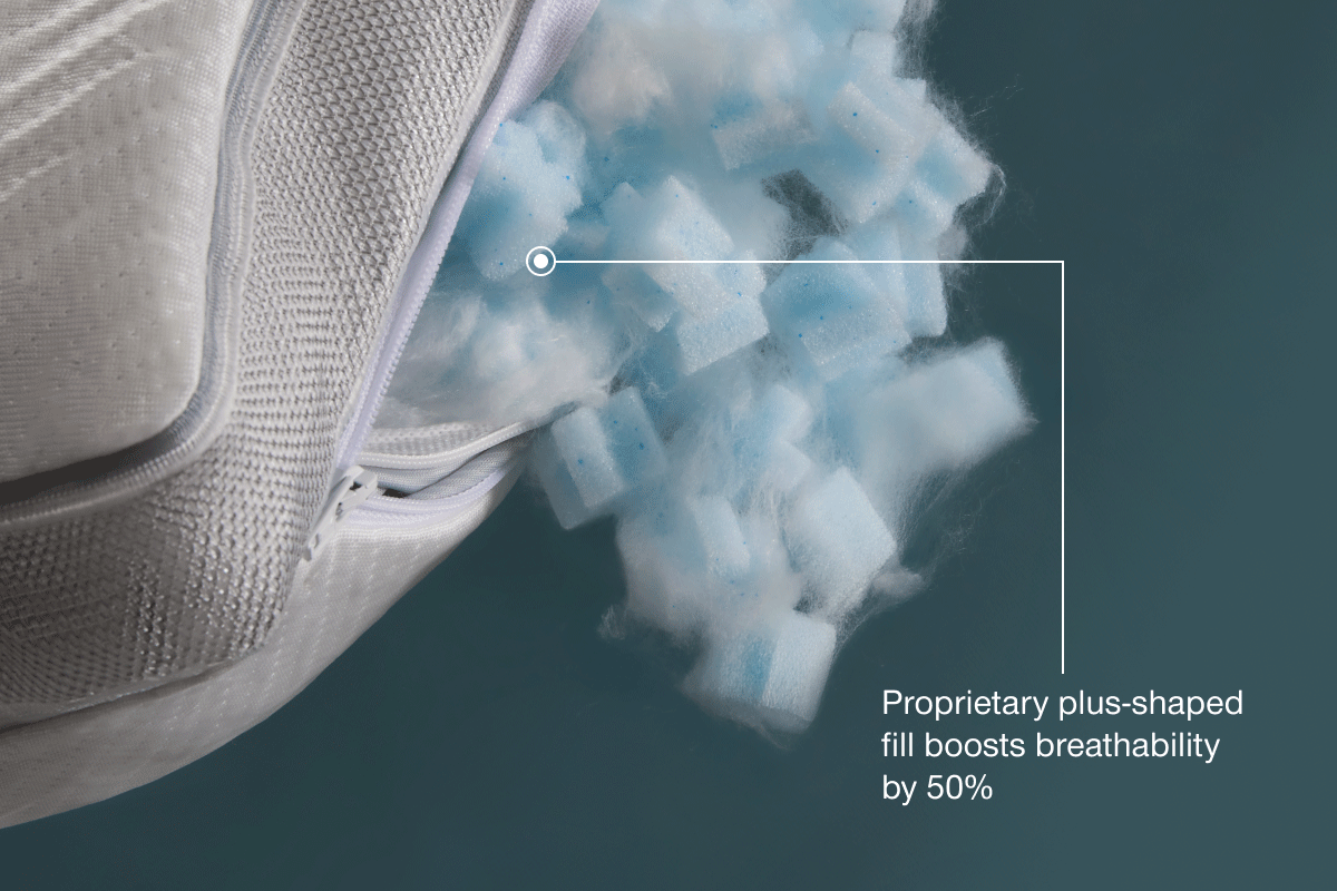 Featuring a blend of cooling gel-infused plus-shaped memory foam and microfiber, designed for 50% more breathability.